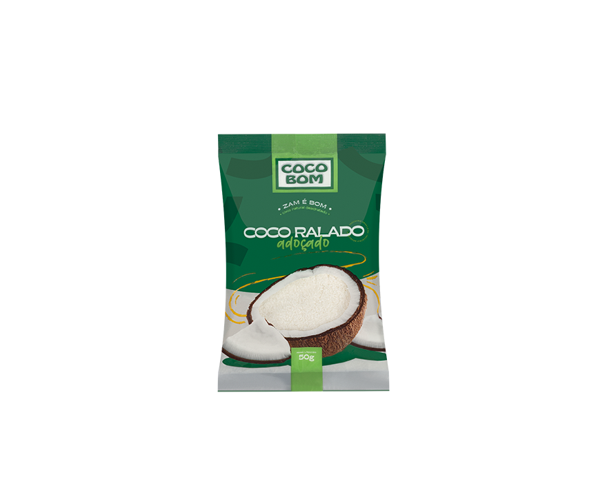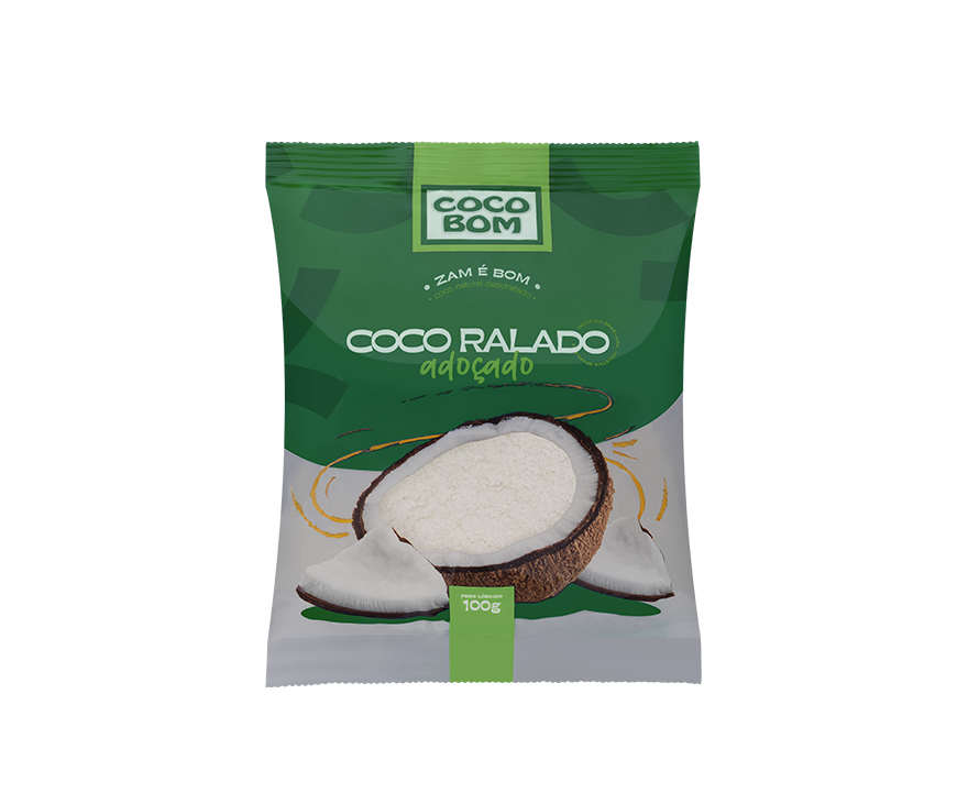 Obtido a partir da mistura de coco ralado desidratado e açúcar, através de processo adequado.