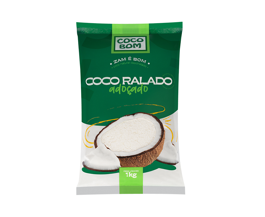 Obtido a partir da mistura de coco ralado desidratado e açúcar, através de processo adequado.